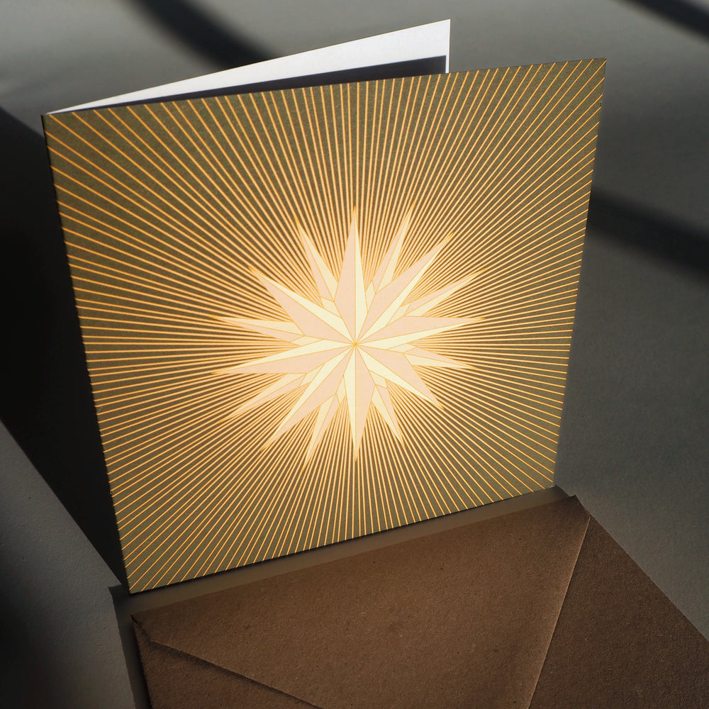 Greeting cards and envelopes are all made from 100% recycled paper. And are fully recyclable or compostable.