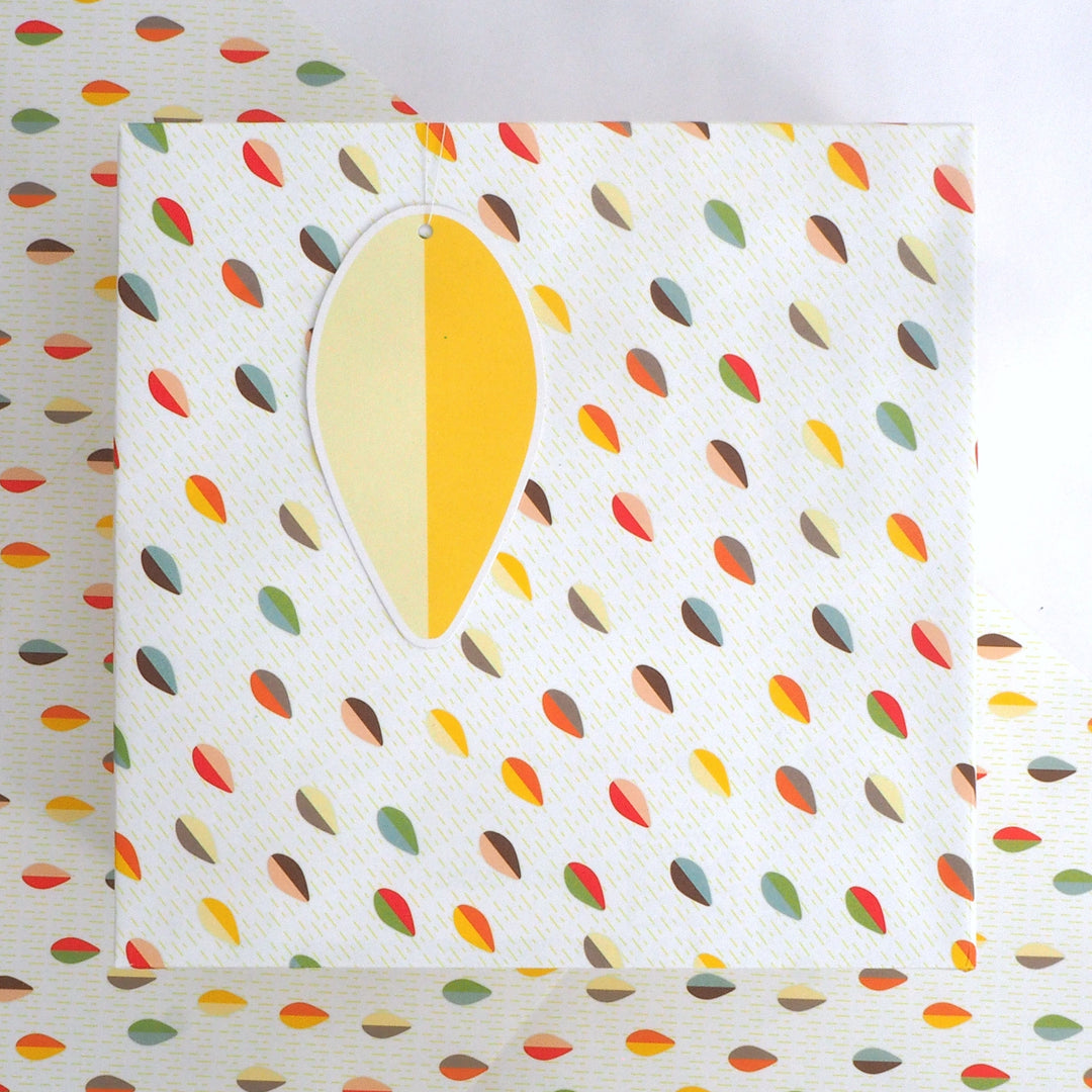 Wrapping paper, tags and packaging are all made from 100% recycled paper. And are all fully recyclable or compostable.