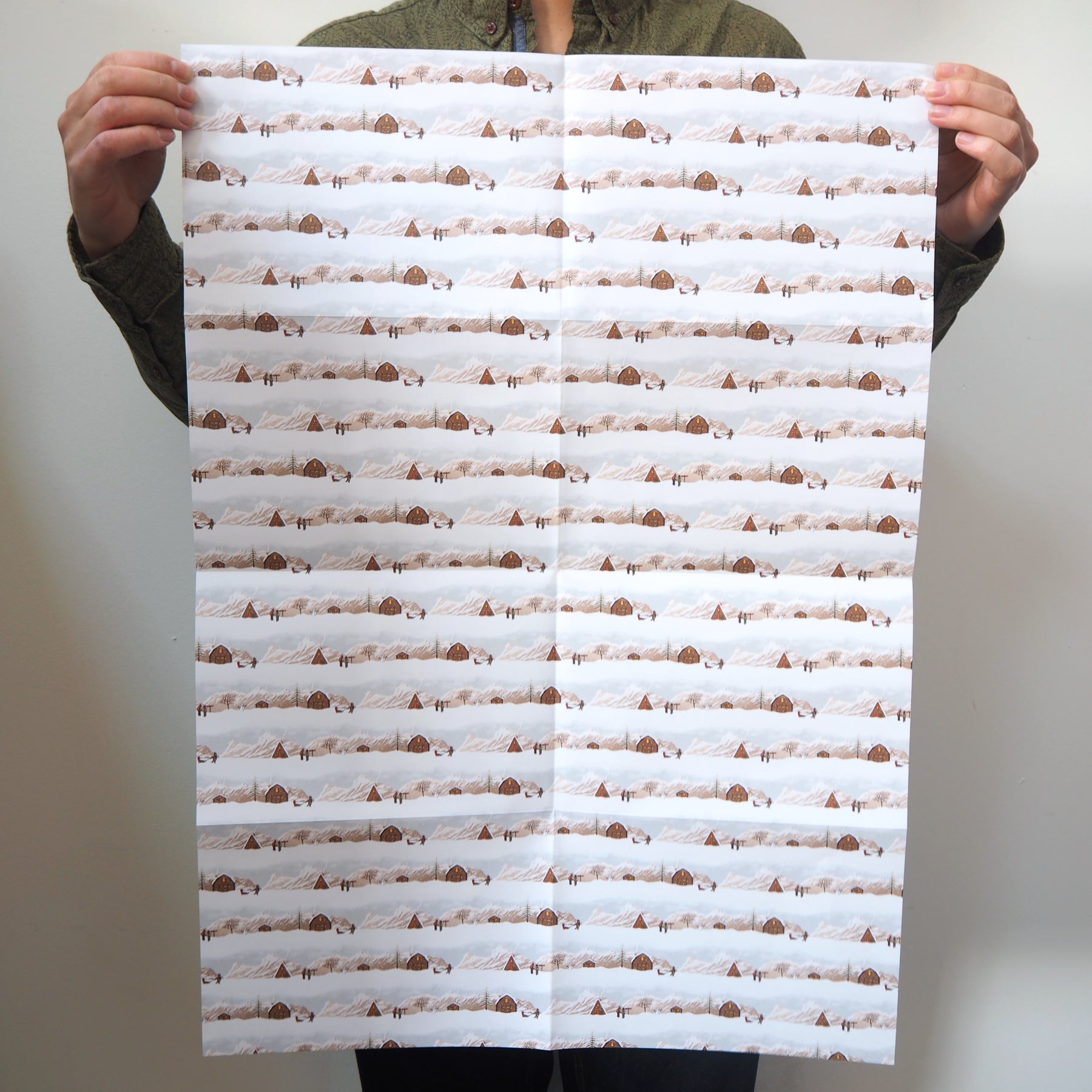 This UK-made, eco-conscious wrapping paper is created and sold directly by the artist, making sustainable gift wrapping effortless. Decorated with a hand-drawn vintage Winter Snow covered landscape illustration, the recyclable sheets and coordinating tags provide a charming and environmentally friendly way to enhance your Christmas presents.
